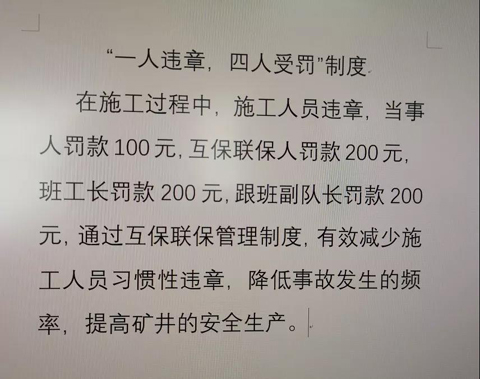 “我趕工期,再不抓緊弄,影響生產(chǎn)了?!薄澳悄阋膊荒苓`章操作呀,都是安全生產(chǎn),前提安全,后再生產(chǎn),安全生產(chǎn)不分家,你說怎么處理吧!”曹家灘公司安監(jiān)員在實際檢查中發(fā)現(xiàn),有些職工在施工過程中不按規(guī)定系安全帶,運(yùn)輸過程中站位不當(dāng),車輛過聯(lián)巷不鳴笛等習(xí)慣性“三違”,對于這些習(xí)慣性違章人員罰款100元無動于衷,覺得這點罰款不算什么。說白了就是違章成本太低,起不到應(yīng)有的安全教育的效果,對癥才能下藥?!斑`章不像以前交100元罰款就能了事,以后這樣肯定是行不通啦?!弊?月份安監(jiān)部開展安全大檢查以來,該公司加強(qiáng)安全...