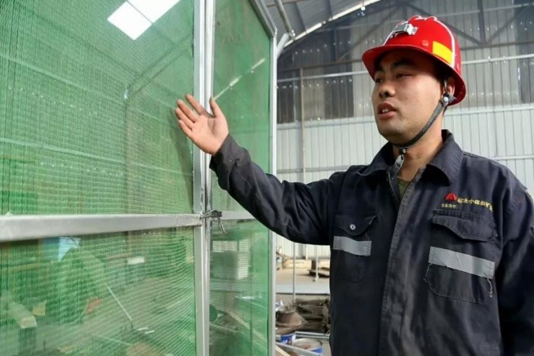 “小發(fā)明”解決“大難題”。為了彌補綜采工作面回風巷定點噴霧降塵裝置的局限性,通風維護區(qū)技術(shù)人員通過反復研究實驗,研制成功了可移動式捕塵網(wǎng)。在綜采工作面回順超前50-100m范圍,安裝一組捕塵網(wǎng),捕塵網(wǎng)的組成根據(jù)巷道斷面大小加工成與斷面大小合適的骨架,骨架采用兩扇門,骨架上采用網(wǎng)片焊接,網(wǎng)片上敷設(shè)2mm的方格用于捕塵,骨架地腳安裝可推移滑輪,捕塵網(wǎng)上風側(cè)3-5m安裝自動噴霧,隨著工作面回采可推動骨架上的滑輪進行遷移,大大改善了作業(yè)環(huán)境,保障了員工的健康。