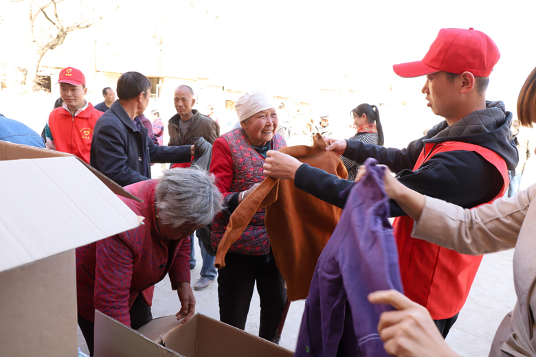 經(jīng)過3個小時的顛簸,到了村上,大家顧不上歇息,立即向村民們分發(fā)衣物和慰問品。志愿者們耐心地給大家挑選合身的衣物,遇到腿腳不靈便的老人,干脆就幫著老人家把衣物和慰問品送到家里。